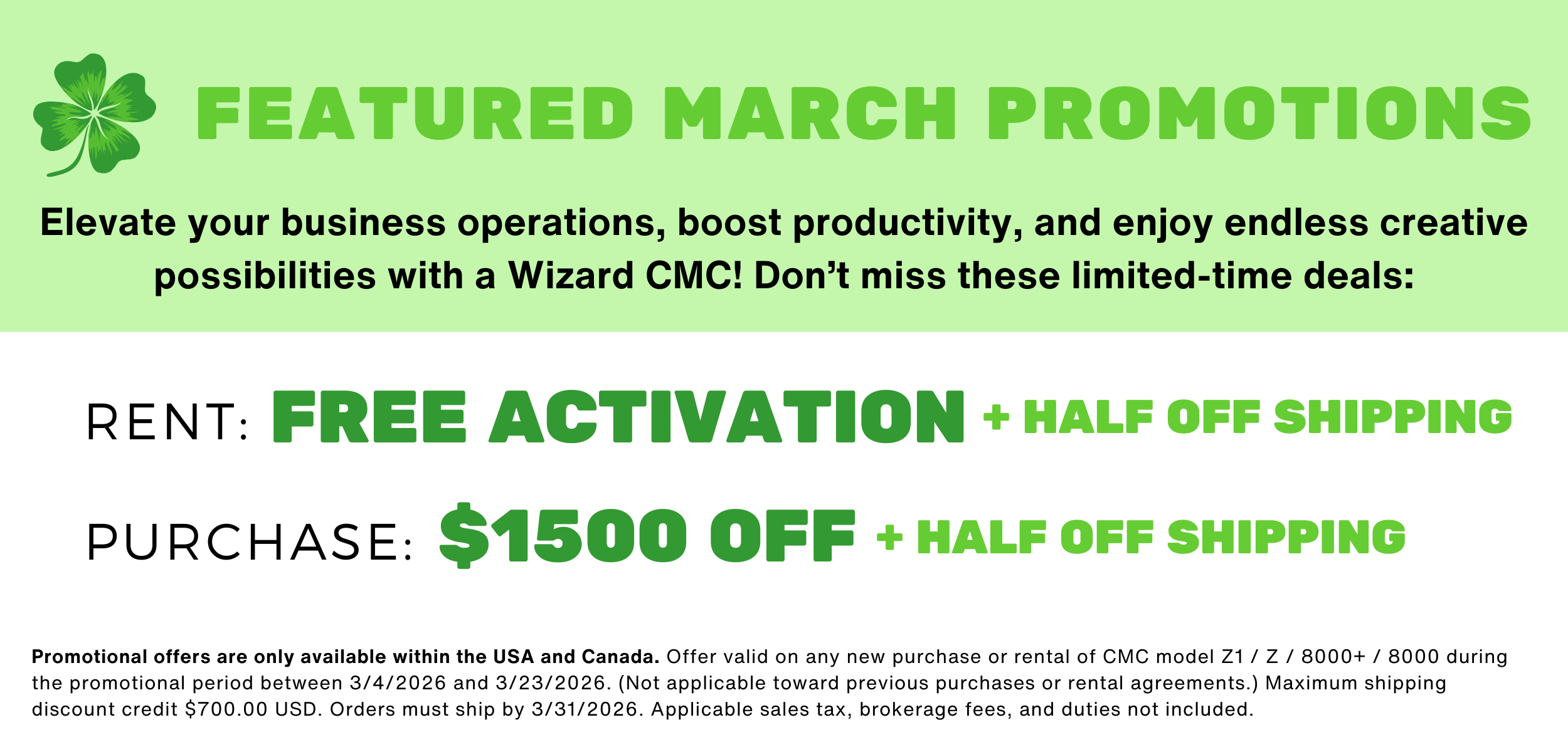 For information about equipment rental or purchase programs, upgrades or trade-ins, or monthly promotions, contact our Sales department: